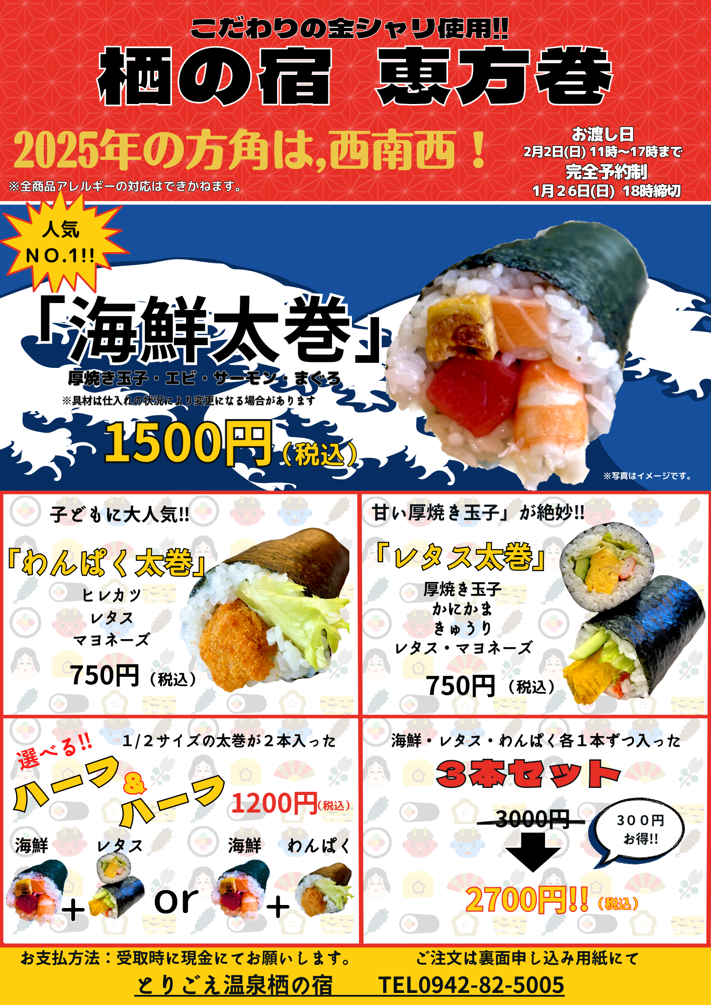 それに合わせて、少し早いですが、恵方巻のご案内です。